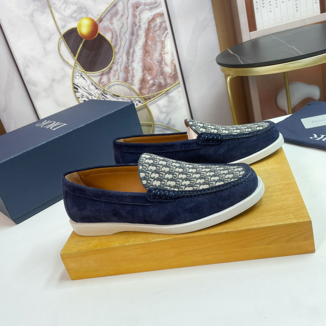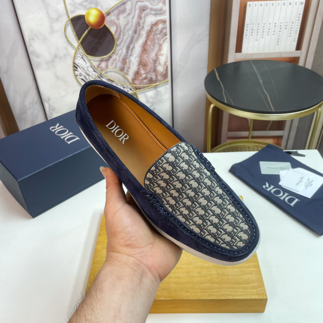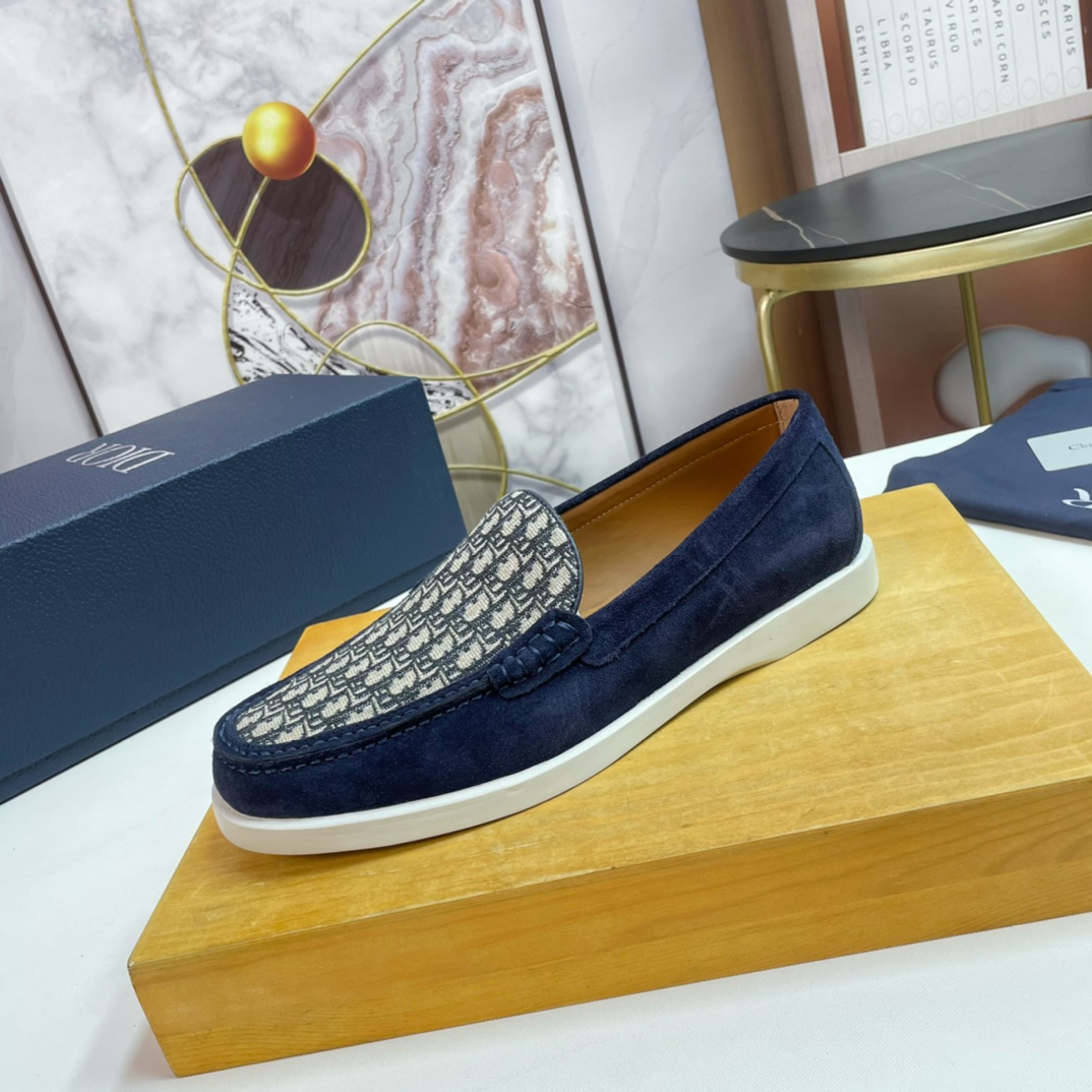 Dior DIOR Top Size: 39-44.45 Custom 2023?? New men 's casual loafers, made from imported top-grain brushed cowhide, hand-stitched with mark stitching, decorated with brand' s classic jacquard canvas on the upper, and the original rubber sole is soft and comfortable.