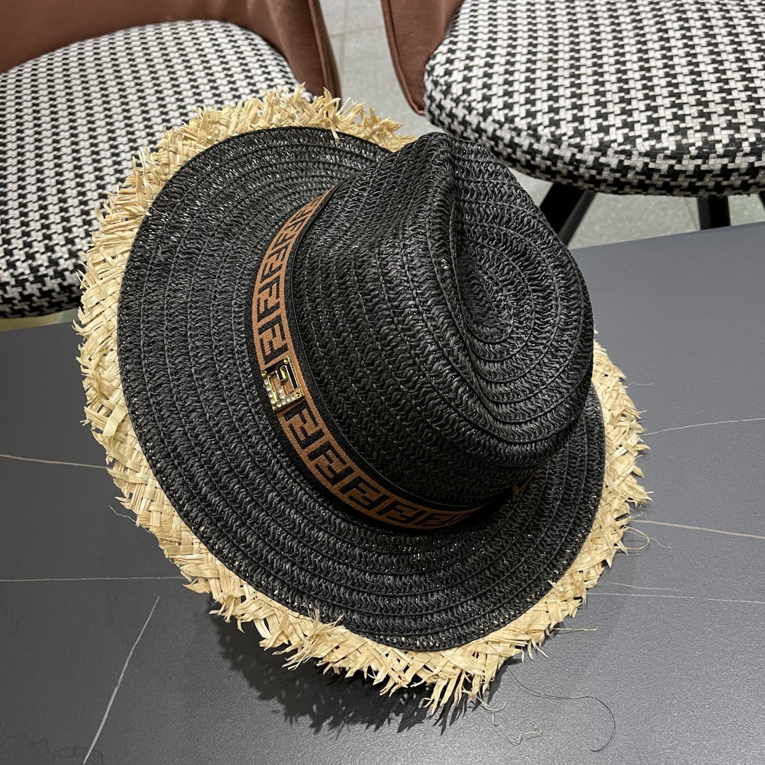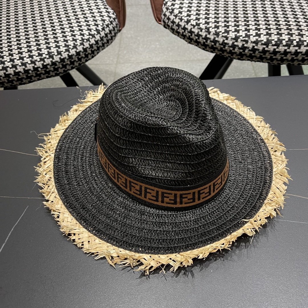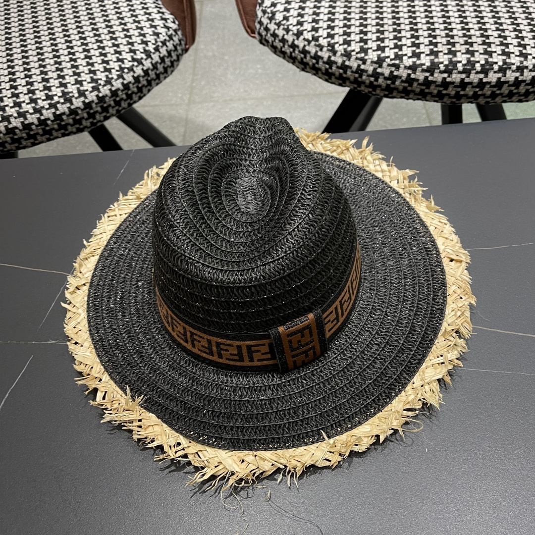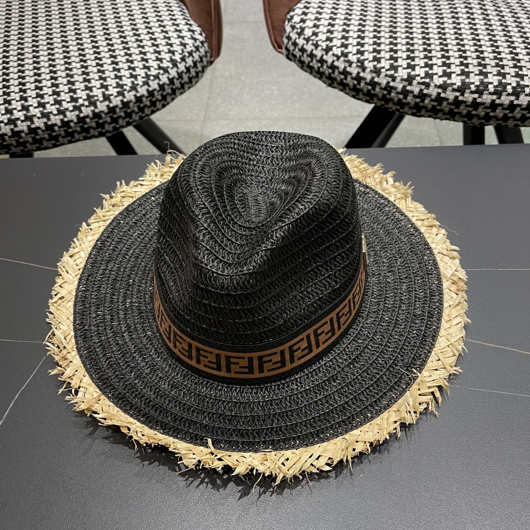 FENDI's British retro Panamanian fringed straw hat for women's spring and summer sun protection Sun-protective jazz top hat, beach vacation hat for outings