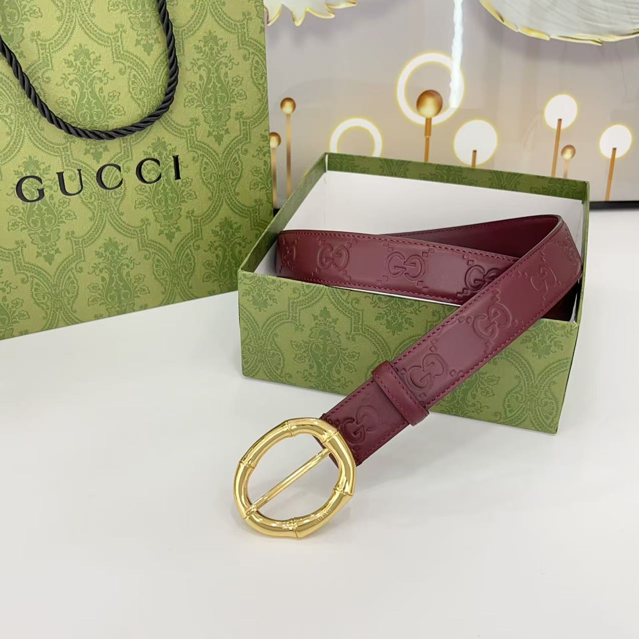 Gucci women's new bamboo buckle with double-sided cowhide and copper buckle, 3.0 cm wide Yards: 75 80 85 90 95 100 105 euros