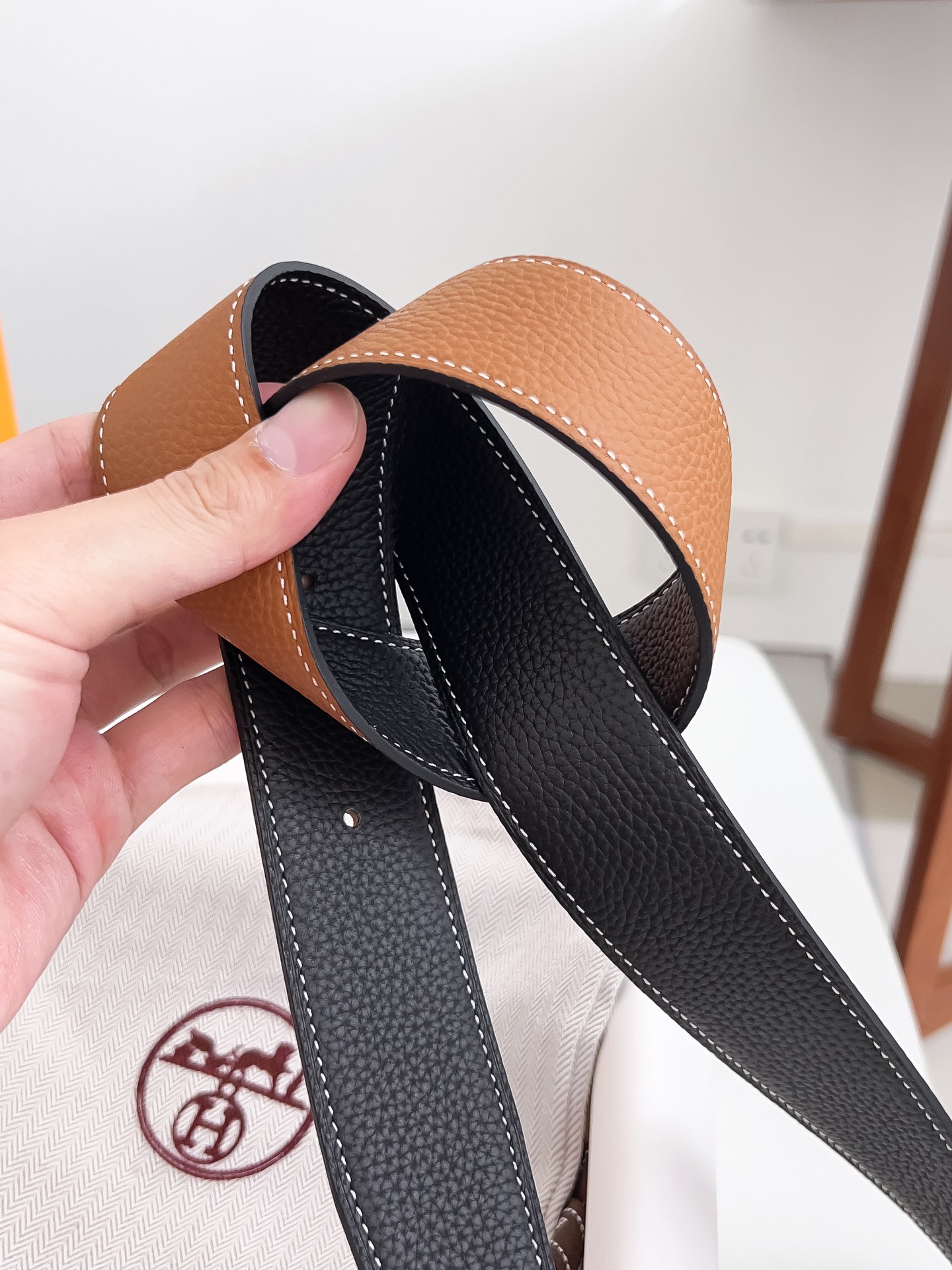 Original Hermes item, width 3.8cm Sg Double-sided top layer togo lychee grain, soft leather material. It can be used on both sides, with fine workmanship and excellent quality. Buckle: Stainless steel buckle (gold and silver)