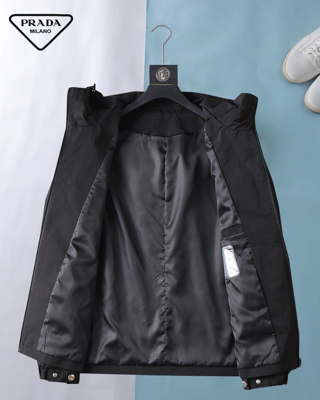 Prada (High-end Quality) Spring 2025 New Fashion Casual hooded Jacket, imported original technological fabric, comfortable and breathable when worn, exquisite handcrafted logo on the chest, unique European fashion style design, digital positioning printing process on the back, highlighting the personality of young people, original hardware accessories, extremely high grade, looking very cool when worn! Please report your height and weight when placing an order for M-3XL!