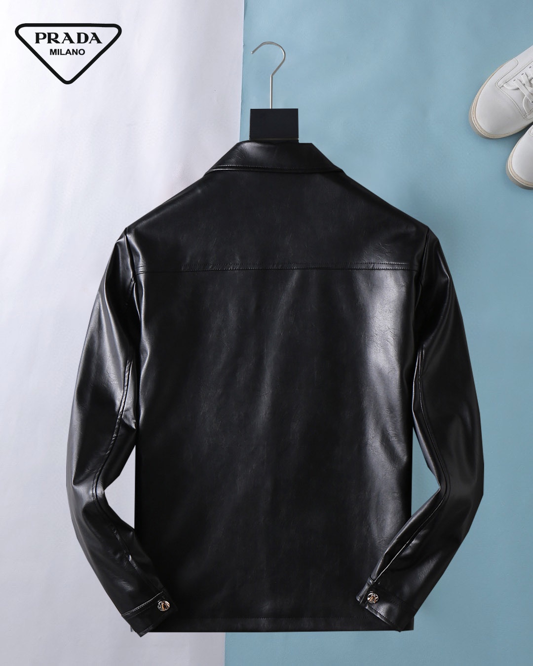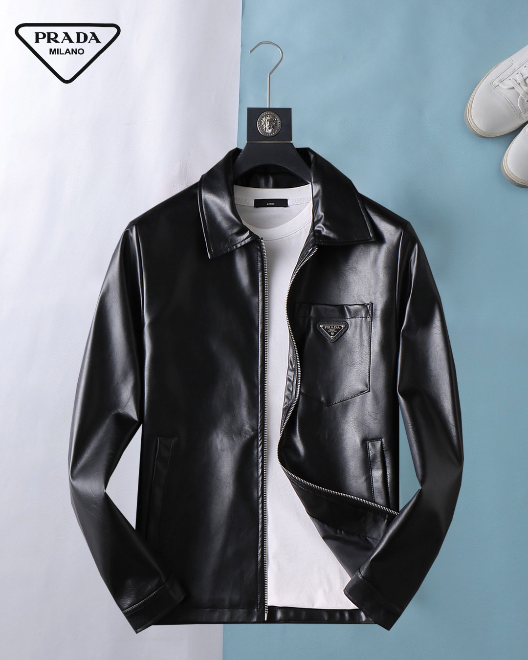 Prada (High-end Quality) Spring 2025 New Fashion Casual hooded leather jacket jacket, imported original technological fabric, comfortable and breathable when worn, exquisite handcrafted logo on the chest, unique European fashion style design, digital positioning printing process on the back, highlighting the personality of young people, original hardware accessories, extremely high grade, looking very cool when worn! Please report your height and weight when placing an order for M-3XL!