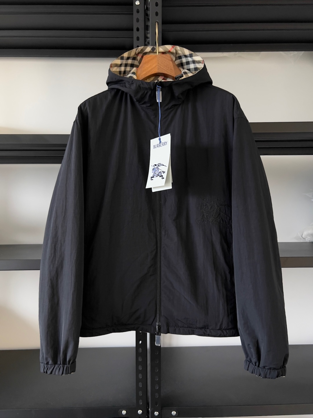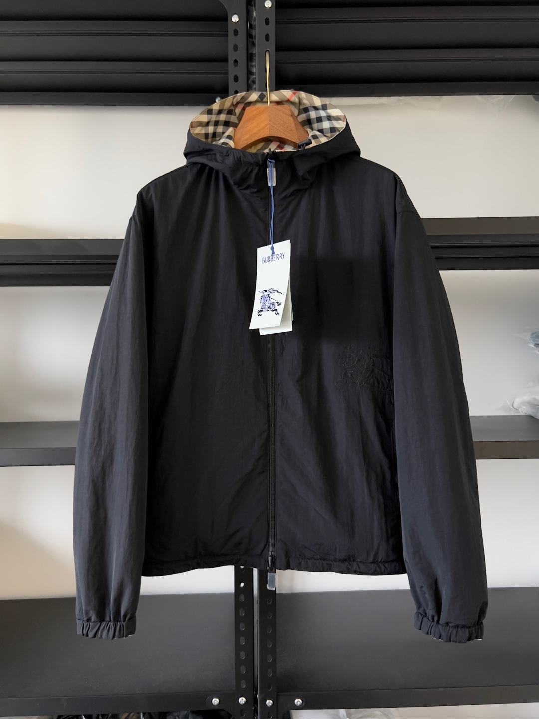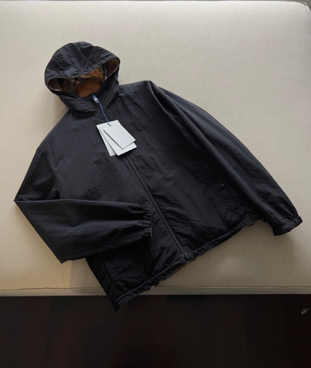 One side is decorated with BBR checkered patterns, while the other side features a solid color design, complemented by brand logo decals. It features a hood and presents a casual style