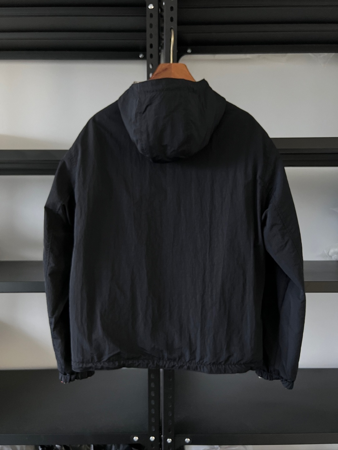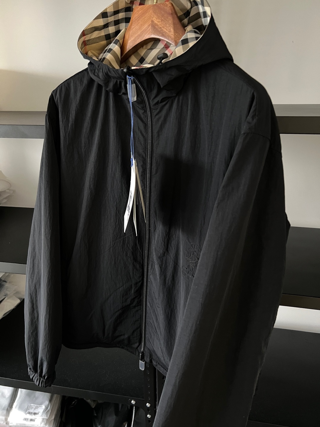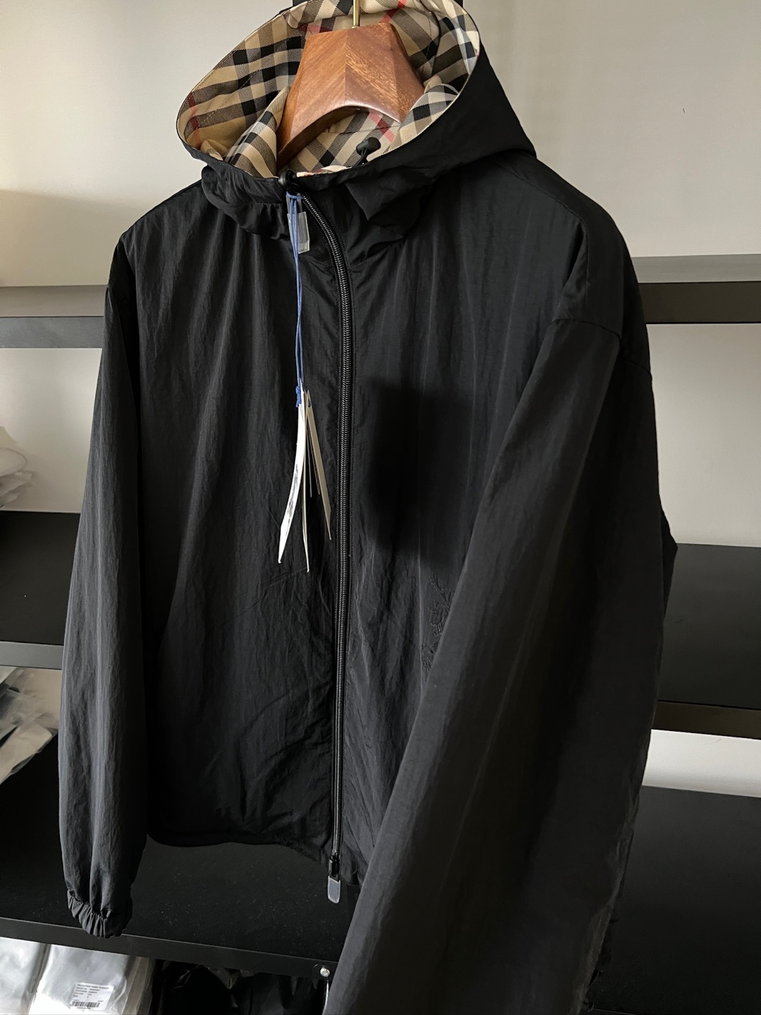 One side is decorated with BBR checkered patterns, while the other side features a solid color design, complemented by brand logo decals. It features a hood and presents a casual style