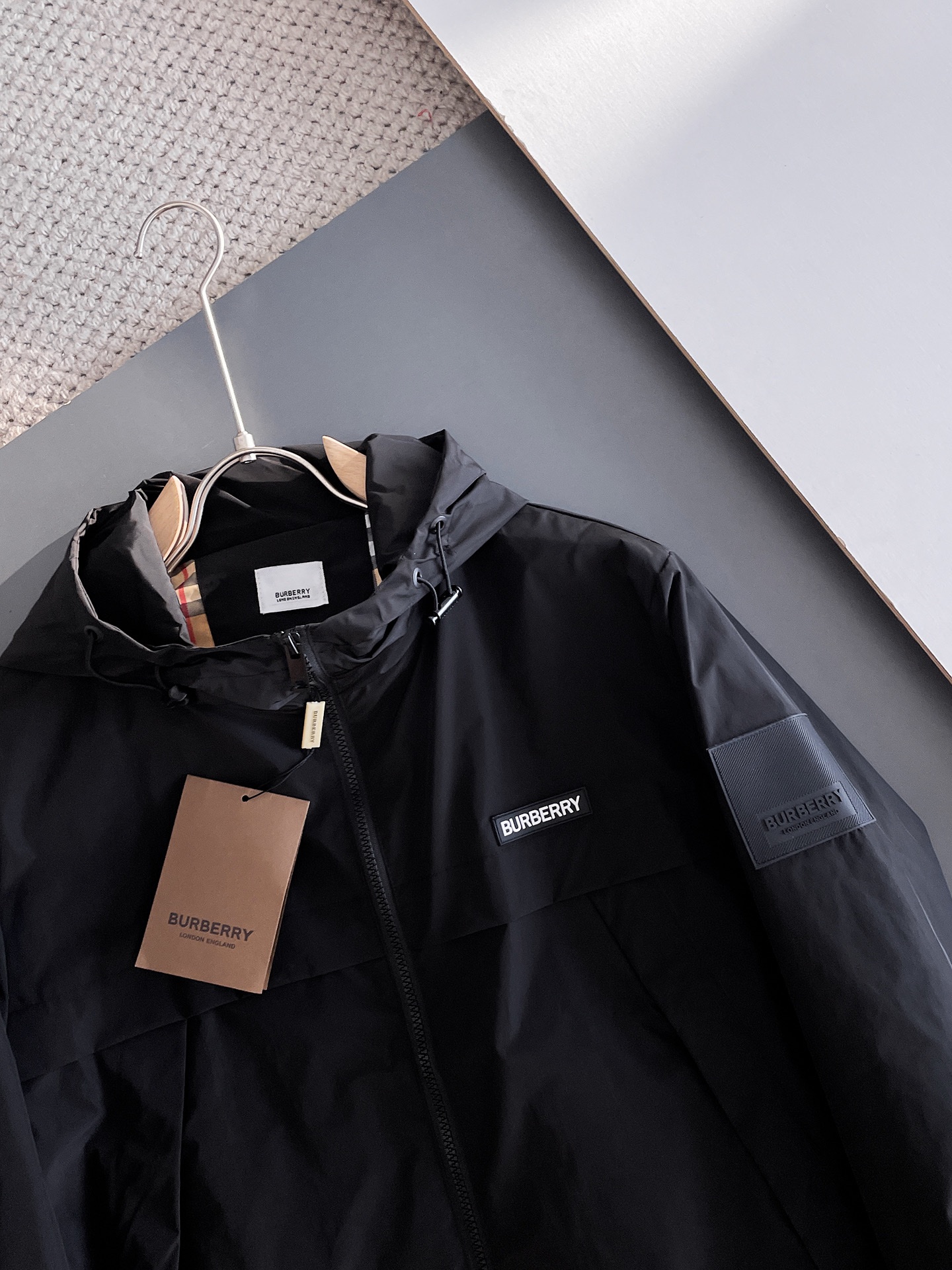 Burberry's new Spring 2025 casual jacket, the latest fashionable casual zipper jacket, fashionable casual jacket! Made of professionally customized technological fabric, the surface is clean, smooth and lustrous. The texture is obvious even through the screen. It is comfortable, light and not stuffy when worn, providing you with the most enjoyable wearing experience! Exquisite Logo accessories! It perfectly enhances the overall sense of luxury and grade, and the high-end luxurious atmosphere can be immediately perceived! This basic and regular hooded jacket has a simple and versatile cut that is not picky about the wearer. It can easily handle various occasions and environments and is undoubtedly an essential item for daily commuting! Size: M-3XL. Please report your height and weight when placing an order!