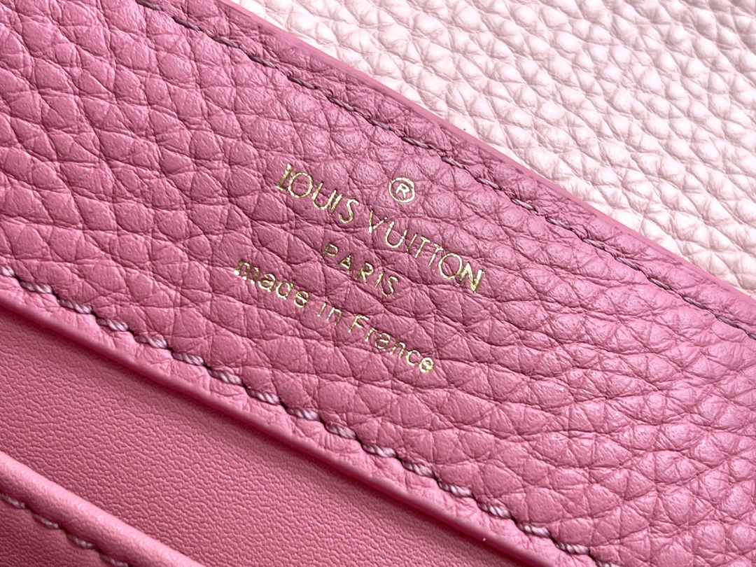 With full set of packaging [PREMIUM ORIGINAL leather ??M20845 light pink flower three-piece] This Capucines mini handbag showcases a gentle beauty: the Taurillon leather body is paired with a light-colored flip cover and top handle, and the enamel Monogram floral chain also enhances the shoulder experience. Fasten the slender leather shoulder strap and explore more styling possibilities. Detailed characteristics 21 x 14 x 8 centimeters (Length x height x Width)