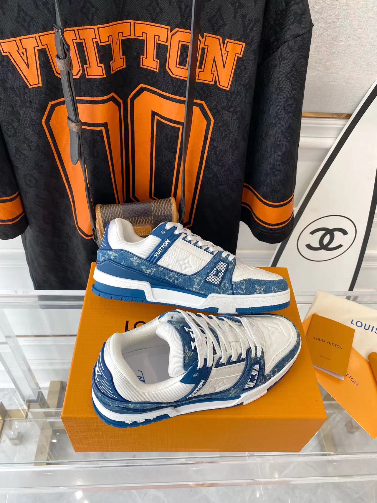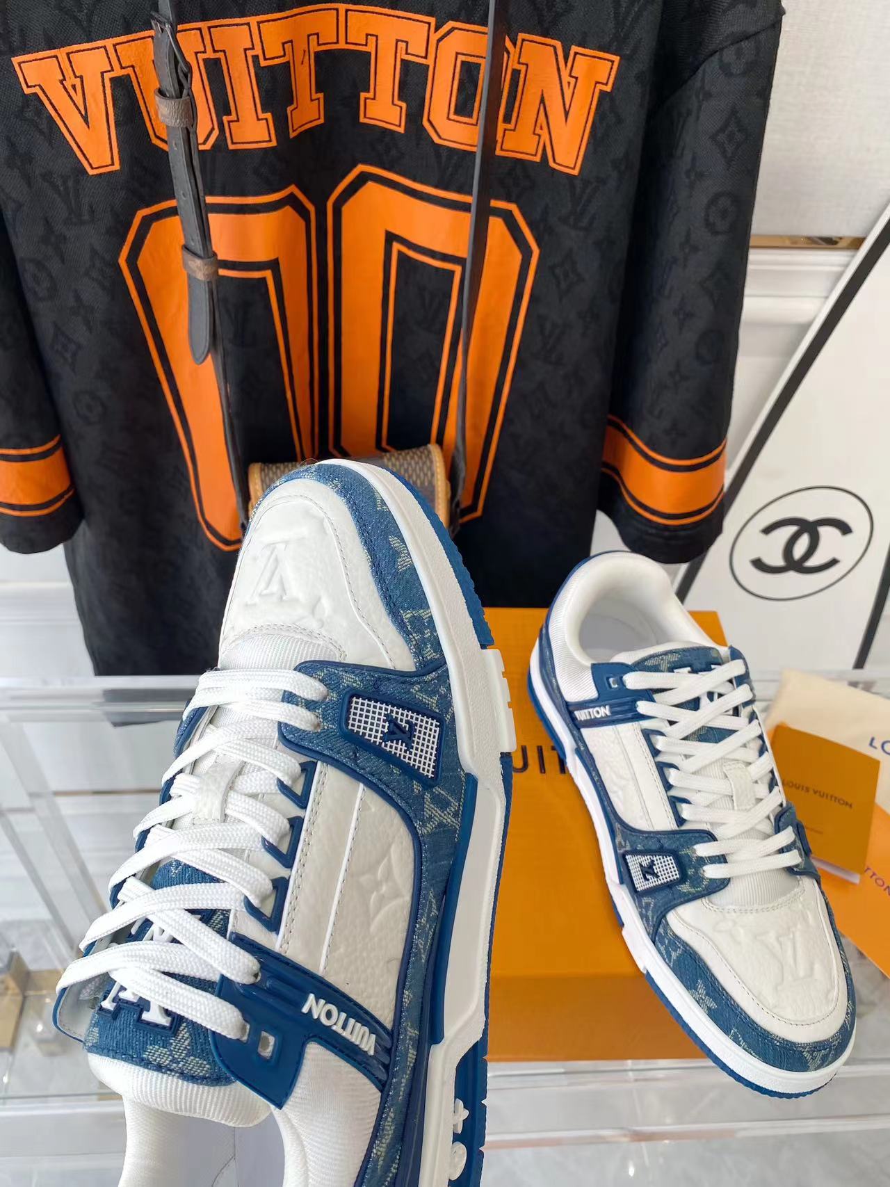 ???? ??L. The ??TRAINER sneaker, a favorite of Virgil Abloh, the artistic director of men's wear, is made of Monogram embossed calfskin and has a mesh lining. The innovative TPU 3-color outsole is decorated with Monogram flowers.