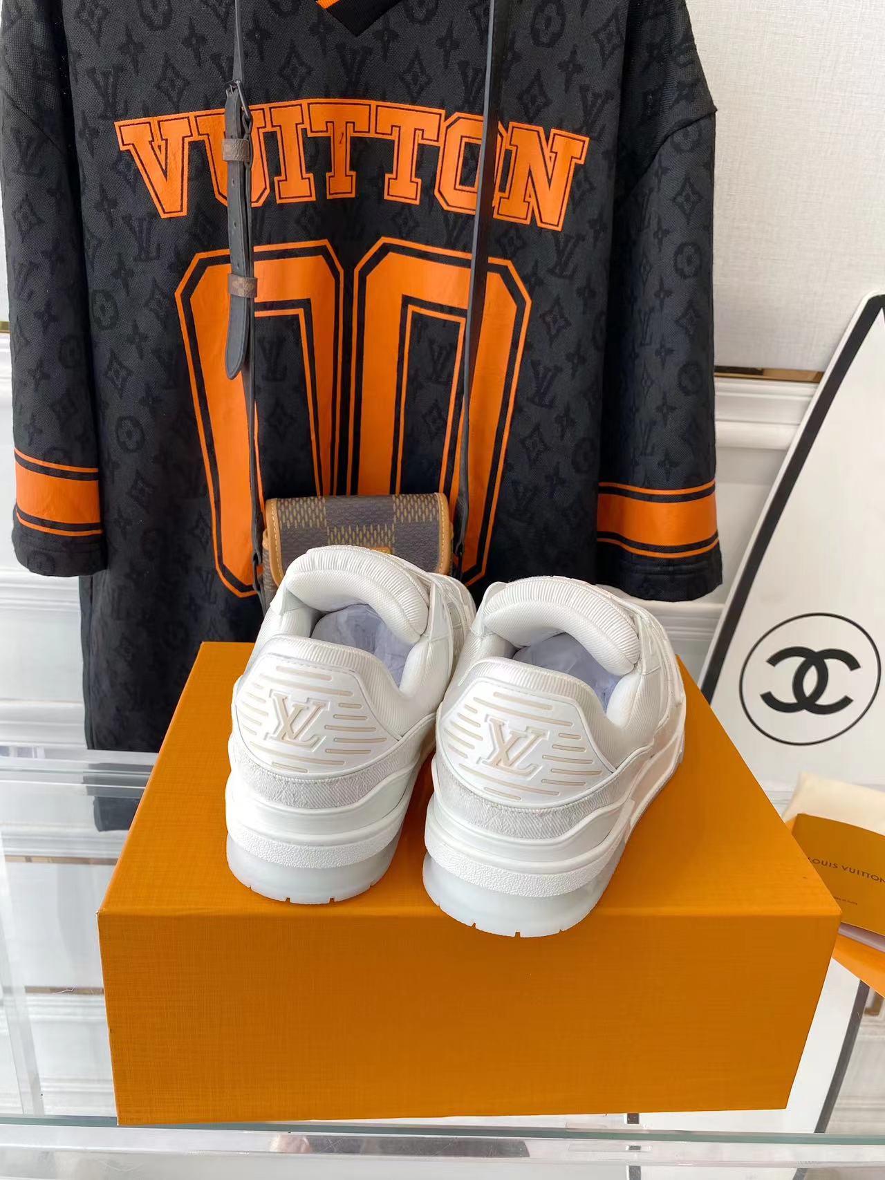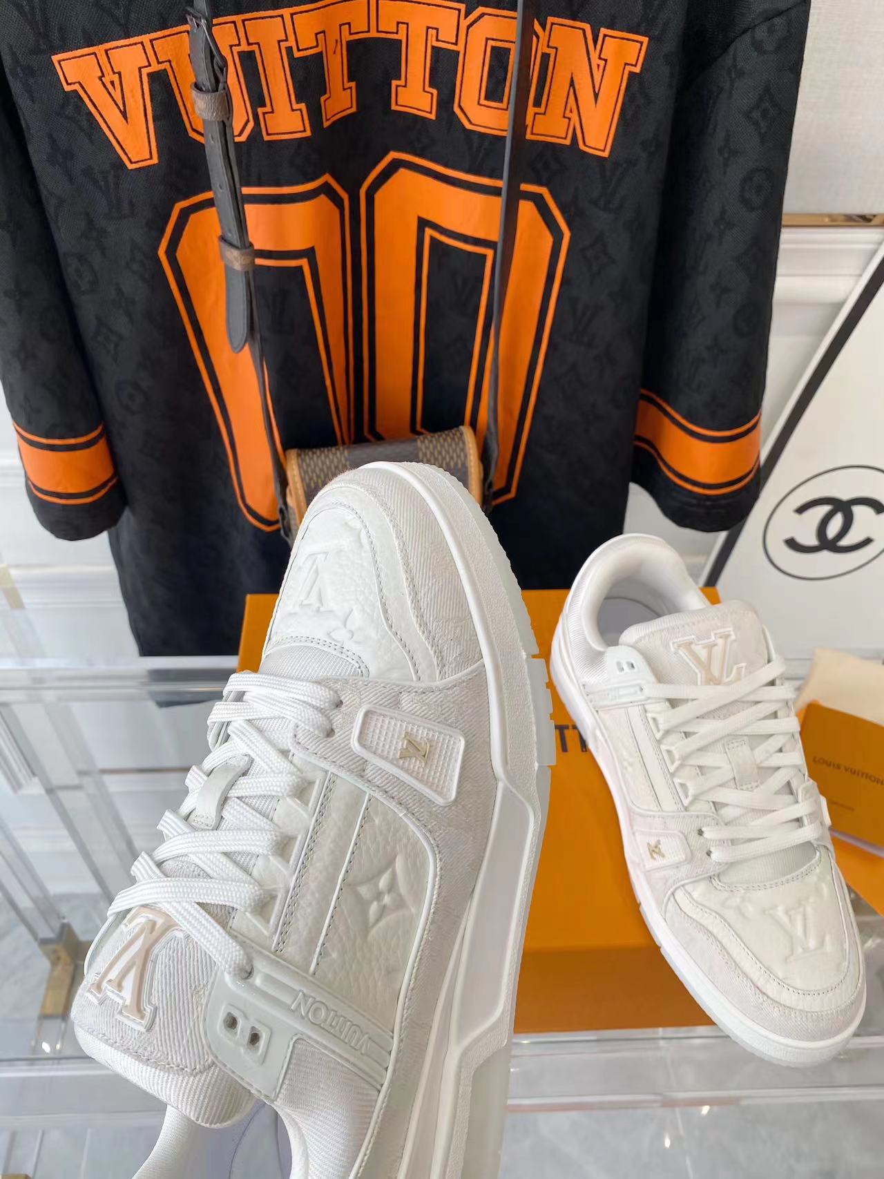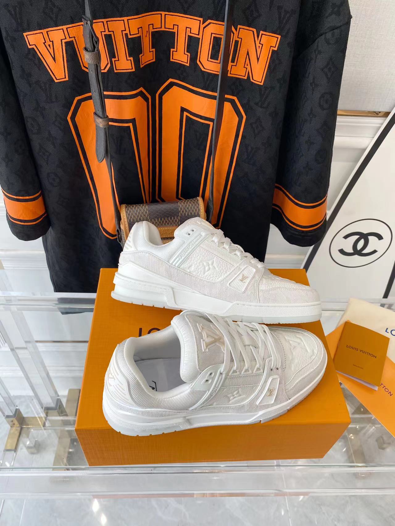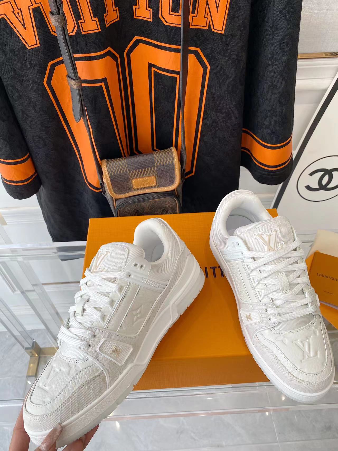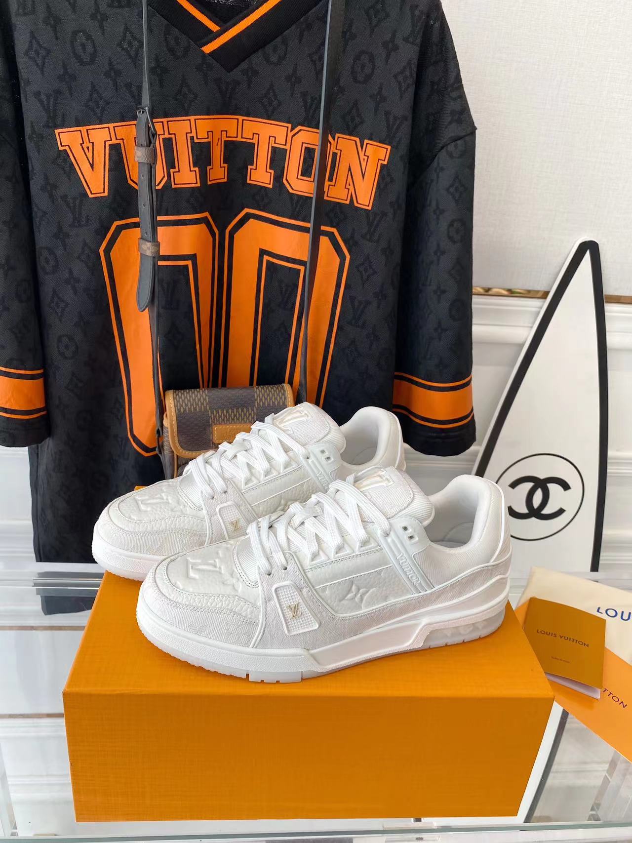 ???? ??L. The ??TRAINER sneaker, a favorite of Virgil Abloh, the artistic director of men's wear, is made of Monogram embossed calfskin and has a mesh lining. The innovative TPU 3-color outsole is decorated with Monogram flowers.